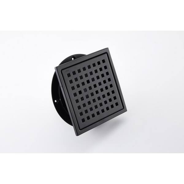 1-Piece 6 in. Stainless Steel Square Shower Floor Drain Bath Hardware Set Included Mounting Hardwarein in Matte Black