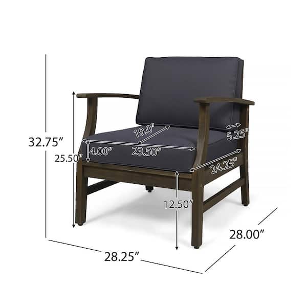 1-Piece Acacia Wood Outdoor Lounge Chair with Gray Cushions for Porch, Patio, Backyard, Poolside