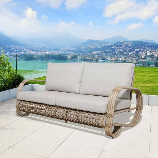 1-Piece Aluminum 2-Seater Outdoor Patio Conversation Sofa Chair with Beige Cushions