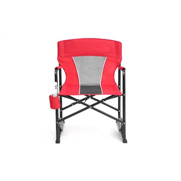 1-Piece Folding Redmetal Outdoor Rocking Chair with Spring-Action Rocking Tech Drink Holder and Weather-Resistant Fabric