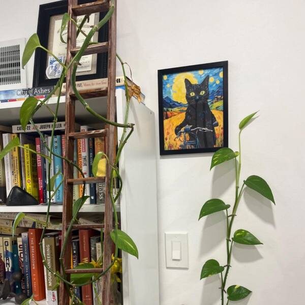 1 Piece Framed Wall Art Cat Poster Starry Night, 14 in. x 11 in. x 0.2 in.