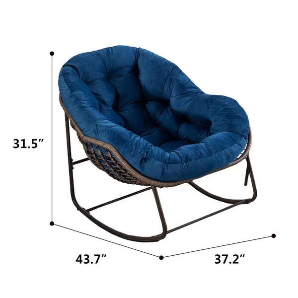 1-Piece Metal Rattan Outdoor Rocking Chair Rocker Recliner Chair with Navy Blue Cushion