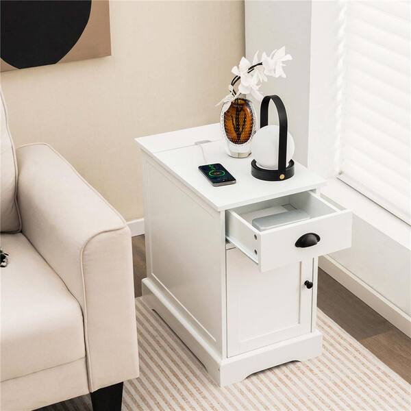 1-Piece Side End Table Nightstand with Charging Station Storage for Living Room Bedroom in White