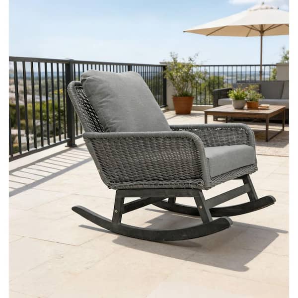 1-Piece Wicker Outdoor Rocking Chair, Porch Rocker with Gray Cushion