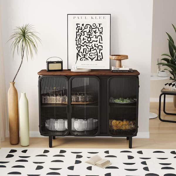 1-Shelf Wood Pantry Organizer with Featuring Two-tier Storage,Unique Fir Cabinet Top for Entryway,Dining Room in Black