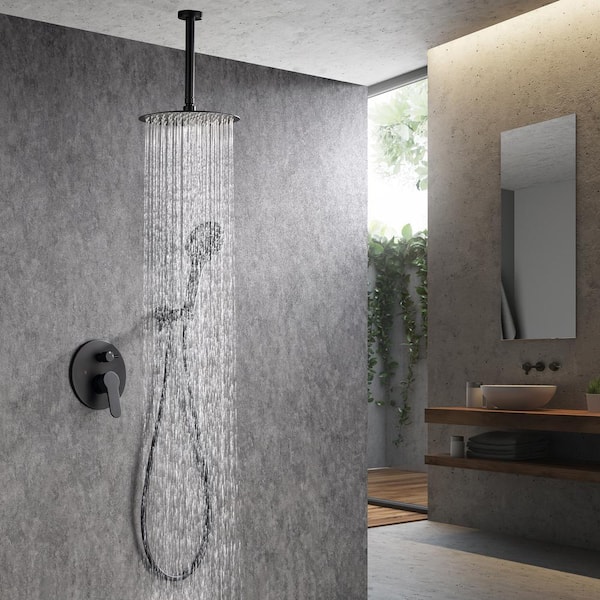 1-Spray 10 in. Dual Shower Head Ceiling Mounted Fixed and Handheld Shower Head 2.5 GPM in Matte Black