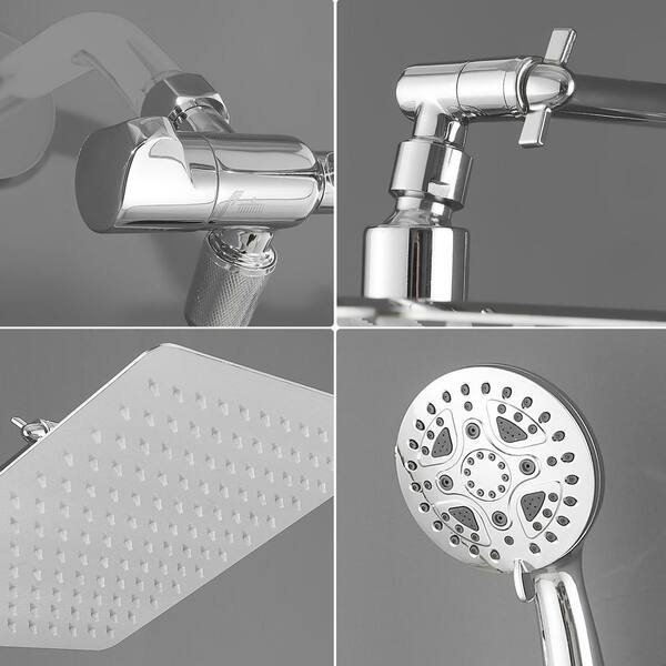 1-Spray Patterns 11.6 in. Wall Mount Dual Shower Heads and Handheld Shower Head in Chrome