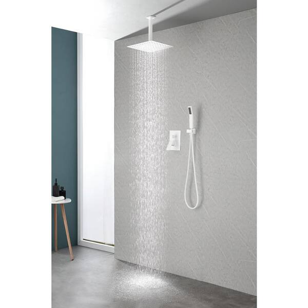 1-Spray Patterns 2.5 GPM 16 in. Single Rainfall Ceiling Mount Fixed Shower Head in White