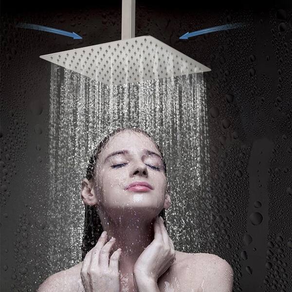 1-Spray Patterns with 2.5 GPM 10 in. Ceiling Mount and Wall Mount Rain Fixed Shower Head in Brushed Nickel