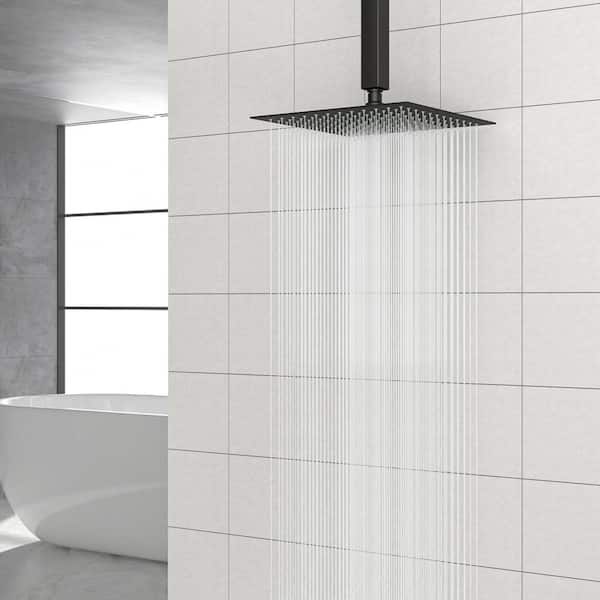 1-Spray Patterns with 2.5 GPM 10 in. Ceiling Mount and Wall Mount Rain Fixed Shower Head in Matte Black