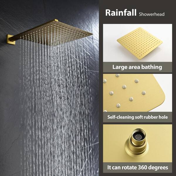 1-Spray Square 16 in. Shower System Shower Head with Handheld in Brushed Gold (Valve Included)