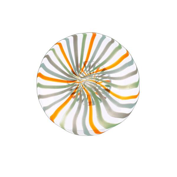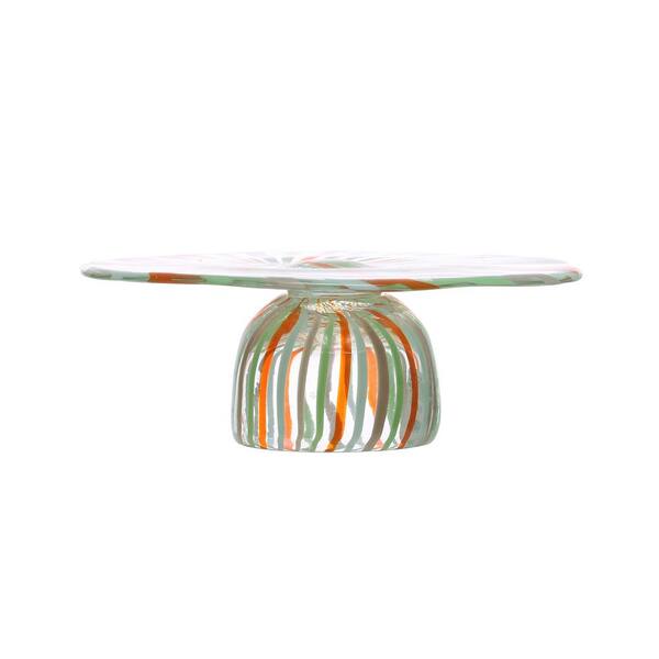 1-Tier Multicolor Clear Glass Cake Stand with Stripes