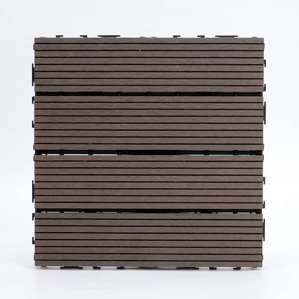 1 ft. W x 1 ft. L Composite Interlocking Deck Tiles Straight Grain Dark Coffee (30-Pack)