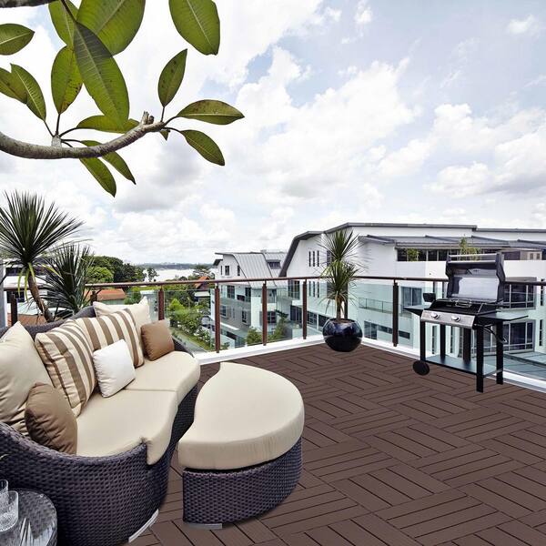 1 ft. x 1 ft. Interlocking Composite Plastic Deck Tile in Light Coffee, Pack of 44, Waterproof All Weather Use