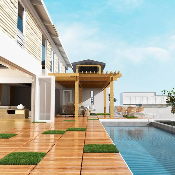 1 ft. x 1 ft. Plastic Interlock Square Deck Tile in Brown Include 36-Piece DIY and 8-Piece Simulated Lawn Tile (44-Pack)