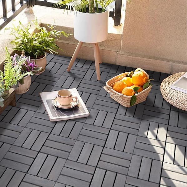 1 ft. x 1 ft. Wood Premium Interlocking Deck Tiles, Quick DIY Installation for Patio in Gray (30 sq. ft. Per Box)