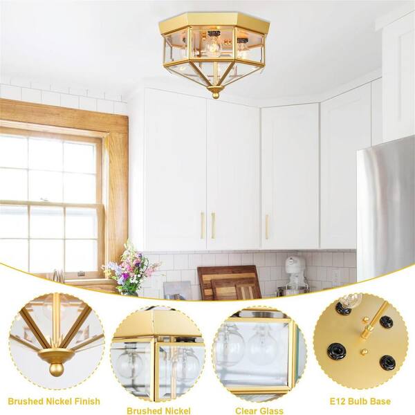 10.25 in. 4-Light Gold Flush Mount Ceiling Light with Clear Beveled Glass and No Bulbs Included