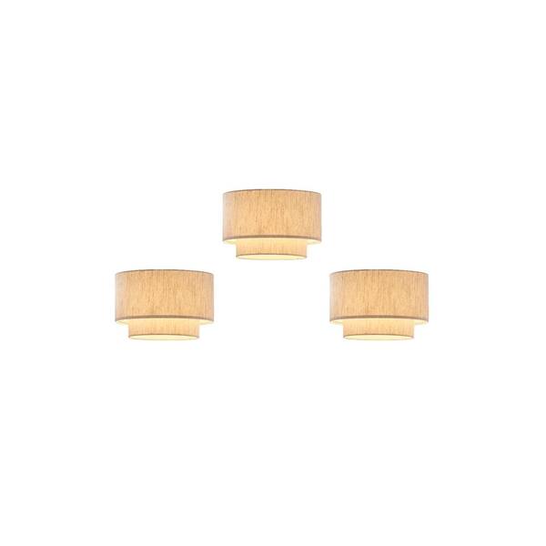 10.5 in. Dia x 7 in. H Premium Double Drum Linen Shade Tan Fully Assemble Fit Most Arched/Arc Floor Lamp (Set of 3)
