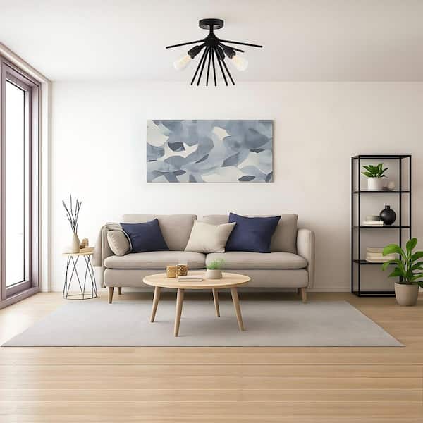 10.6 in. 3-Light Painted Semi- Flush Mount with No Bulbs Included Matte black