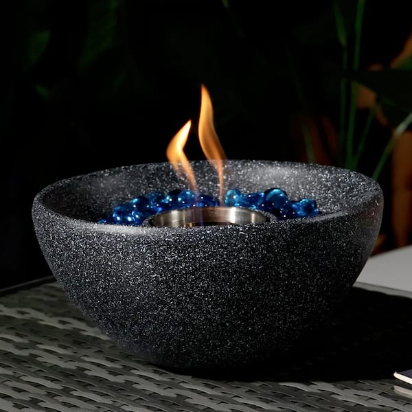 10.63 in. x 5.12 in. Oval Ethanol Concrete Tabletop Fire Pit with Mixed Color Personal Fireplace Mini Fire Pit in Black