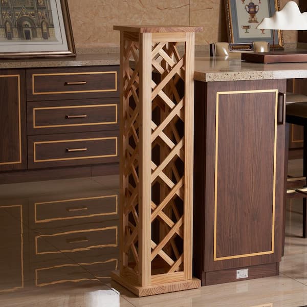 10-Bottle Natural Pine Vertical Checkered Wine Rack