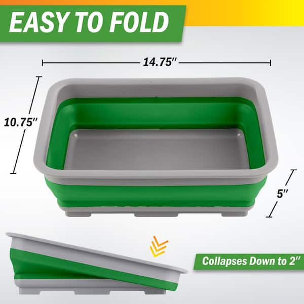 10 L Collapsible Portable Wash Basin Pop-Up Dish Tub and Cooling Chest in Green