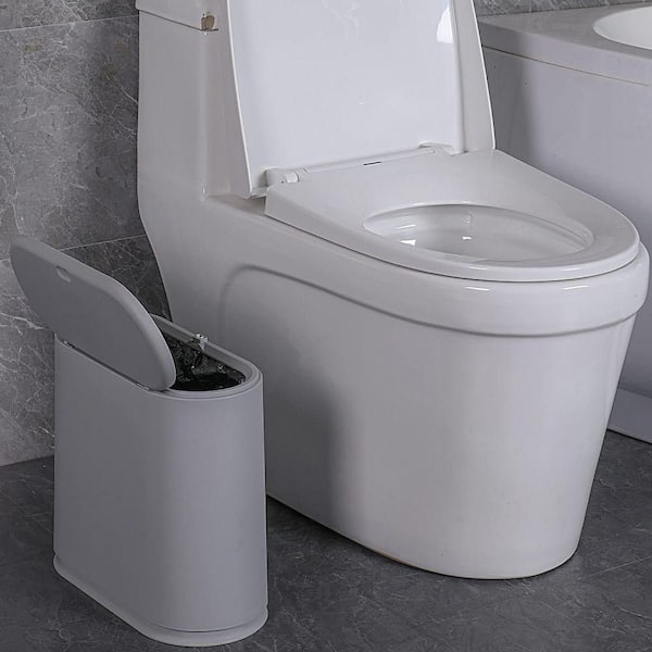 10 Liter Rectangular Plastic Trash Can Wastebasket with Press Type Lid in Gray