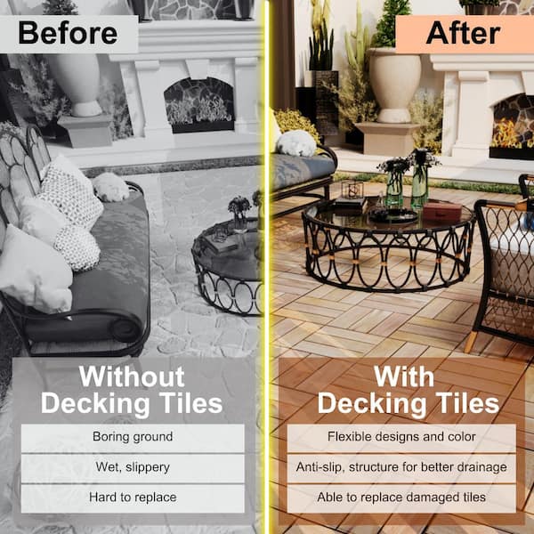 10-Pack 12 in. x 12 in. Square Outdoor Yellow Acacia Wood Interlocking Deck Tiles for Patio, Bancony, Pool Side