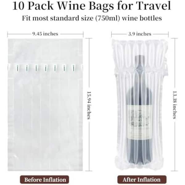 10 Pack Inflatable Air Column Wine Bottle Protector Bags with Pump Reusable for Travel Airplane 16. 54x9. 45