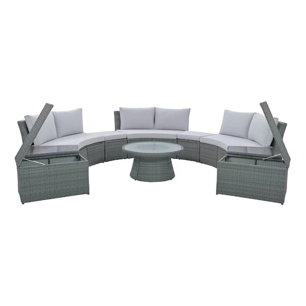 10-Piece Wicker Outdoor Sectional Half Round Sofa Set, Patio Conversation Set with Gray Cushions for Free Combination