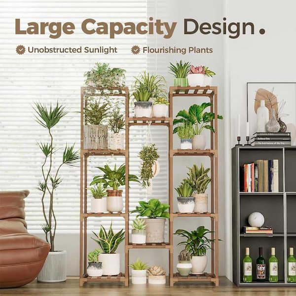 10-Shelf Wooden Plant Stand for Indoor and Outdoor Use with Hanging Functionality