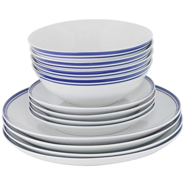12-Piece Casual Blue Porcelain Dinnerware Set