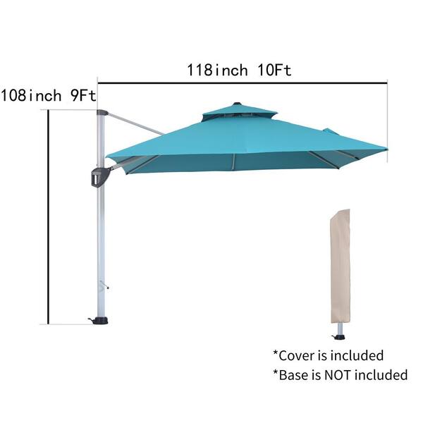 10 ft. Aluminum Double Tier Canopy Cantilever Patio Umbrella in Turquoise with 360° Rotation Adjustable Angle and Cover