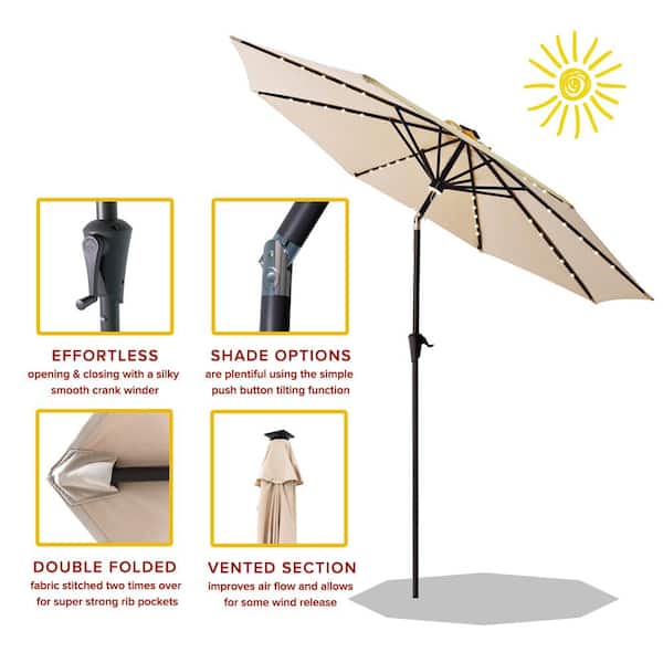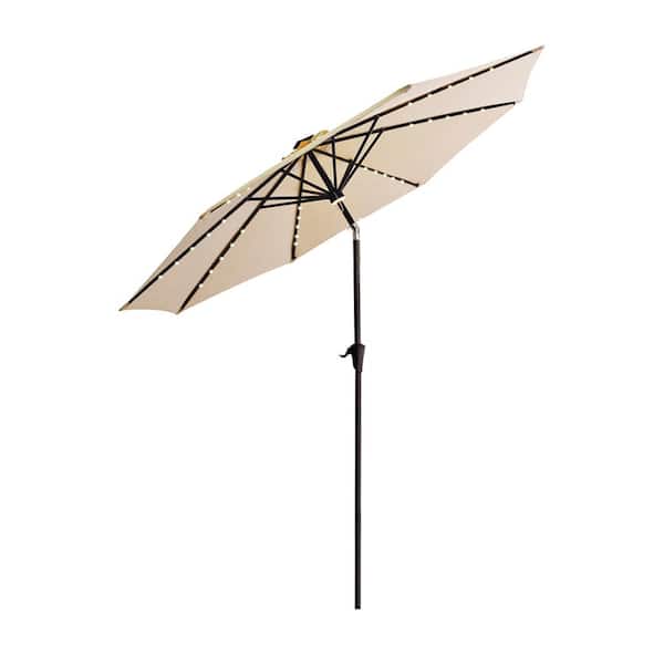 10 ft. Aluminum Market Solar Lighted Tilt Patio Umbrella with LED in Beige Solution Dyed Polyester