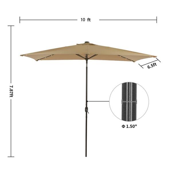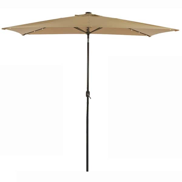 10 ft. Aluminum Market Umbrella Solar Tilt Patio Umbrella in Beige with 26 LED Lights