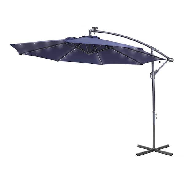 10 ft. Cantilever Solar LED Offset Patio Umbrella in Navy Blue
