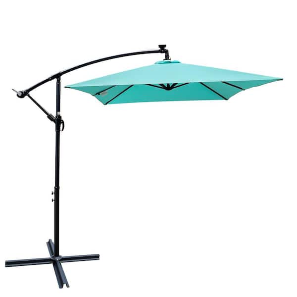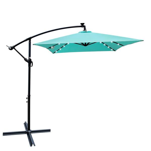 10 ft. Metal Cantilever Solar LED Outdoor Patio Umbrella in Turquoise