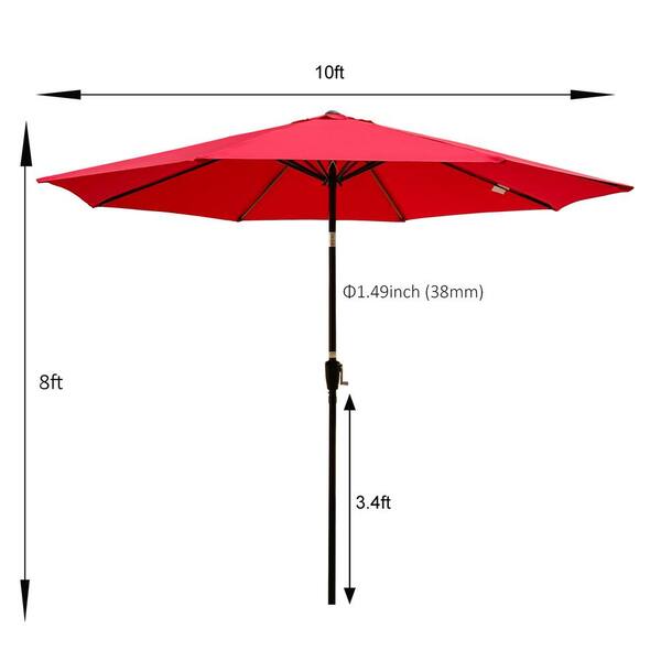 10 ft. Outdoor Patio Beach Market Umbrella with 8 Ribs Tilt Crank without Flap and Base in Red
