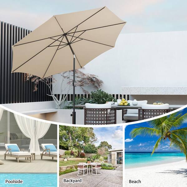 10 ft. Solar Patio Umbrella 112 LED Lighted Umbrella Outdoor Table Market Umbrella in Beige