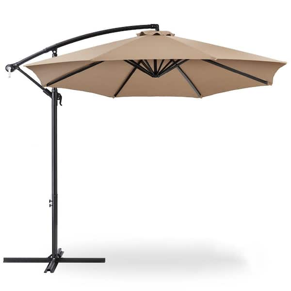 10 ft. Steel Cantilever Patio Umbrella in Tan