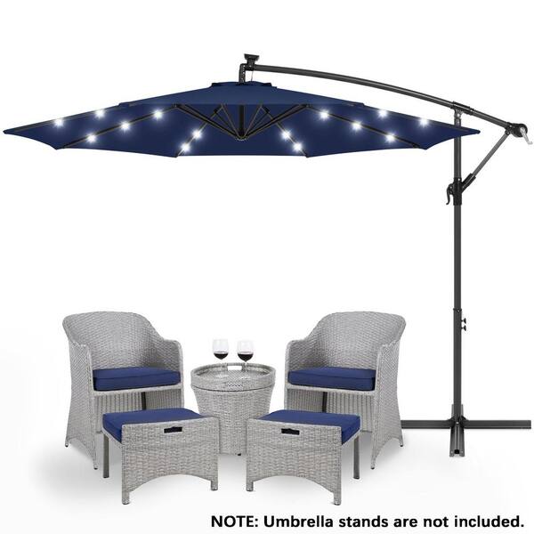 10 ft. Steel Cantilever Solar Patio Umbrella in Navy Blue