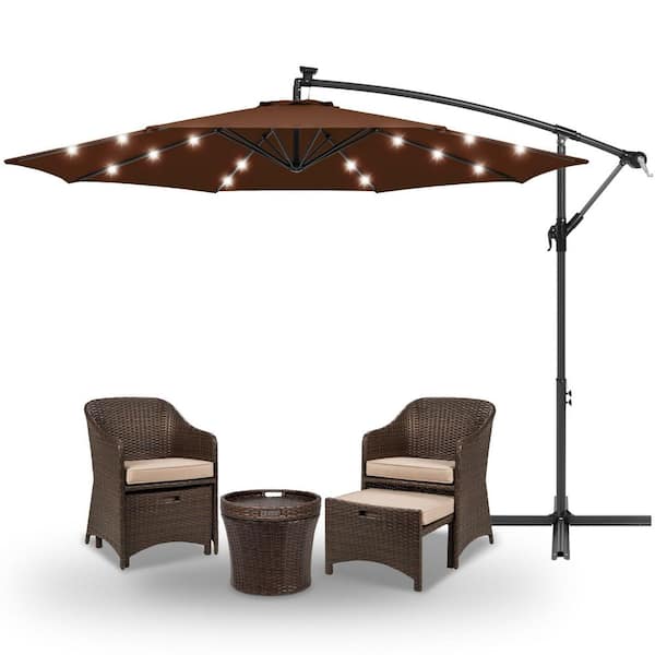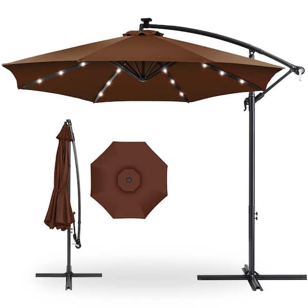 10 ft. Steel Cantilever Solar Tilt Patio Umbrella in Brown