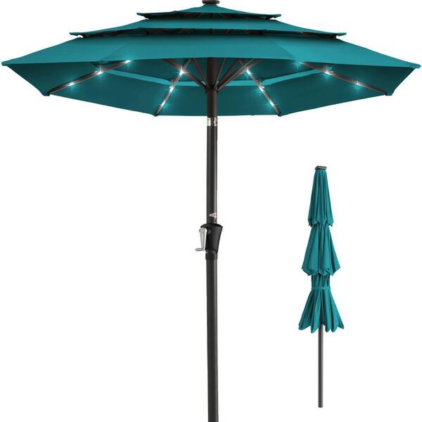 10 ft. Steel Market Solar Patio Umbrella in Cerulean with Push Button Tilt
