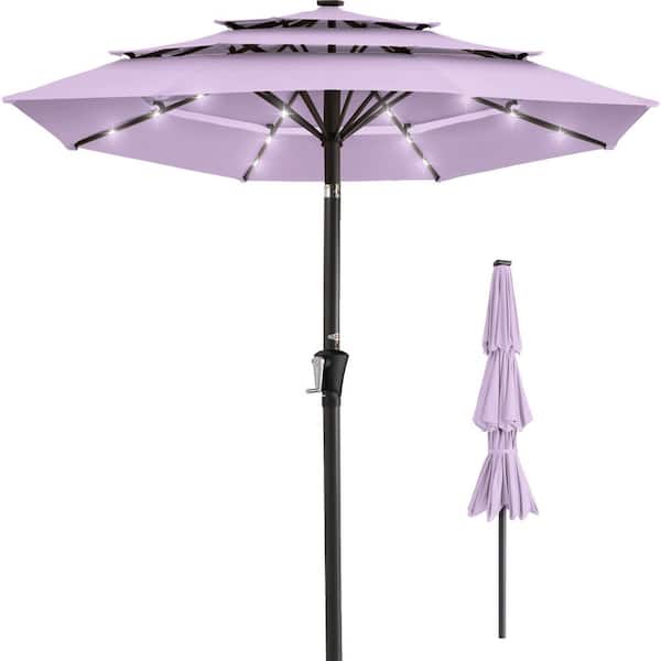 10 ft. Steel Market Solar Tilt Patio Umbrella in Lavender with Push Button Tilt