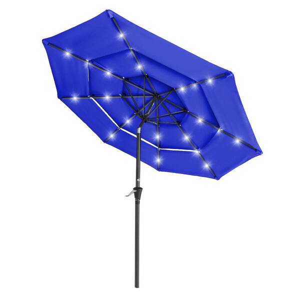 10 ft. Steel Market Solar Tilt Patio Umbrella in Resort Blue with Push Button Tilt