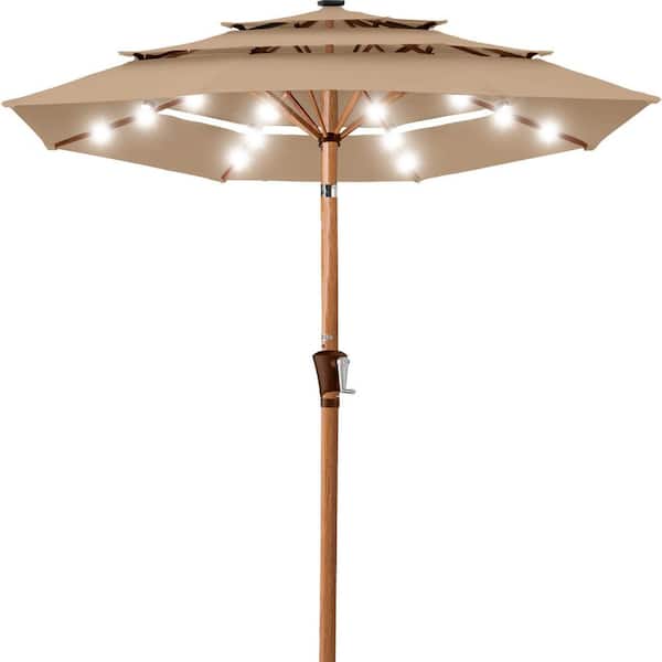 10 ft. Steel Market Solar Tilt Patio Umbrella in Tan