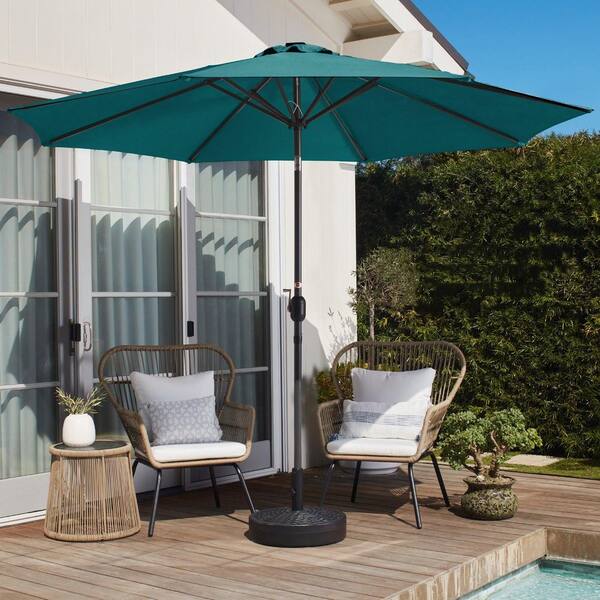 10 ft. Steel Market Tilt Patio Umbrella in Cerulean with Crank Lift
