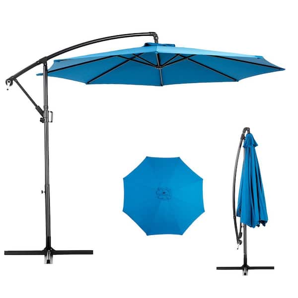 10 ft. Steel Outdoor Market Umbrella Tilt Adjustable Offset Patio Umbrella in Dark Blue with 8-Ribs