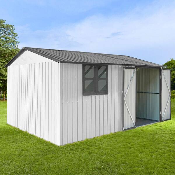 10 ft. W x 12 ft. D Meatl Outdoor Storage Shed with Lockable Door Window Garden Tool Shed, White Plus Gray (120 sq. ft.)