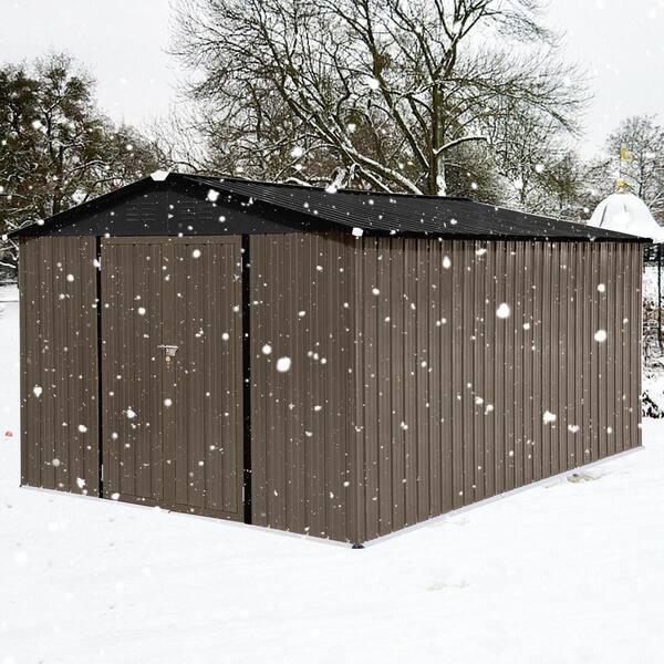 10 ft. W x 12 ft. D Outdoor Metal Garden Shed, Utility Tool House With Door, Aluminum Frames, Brown+Black (120 sq. ft. )